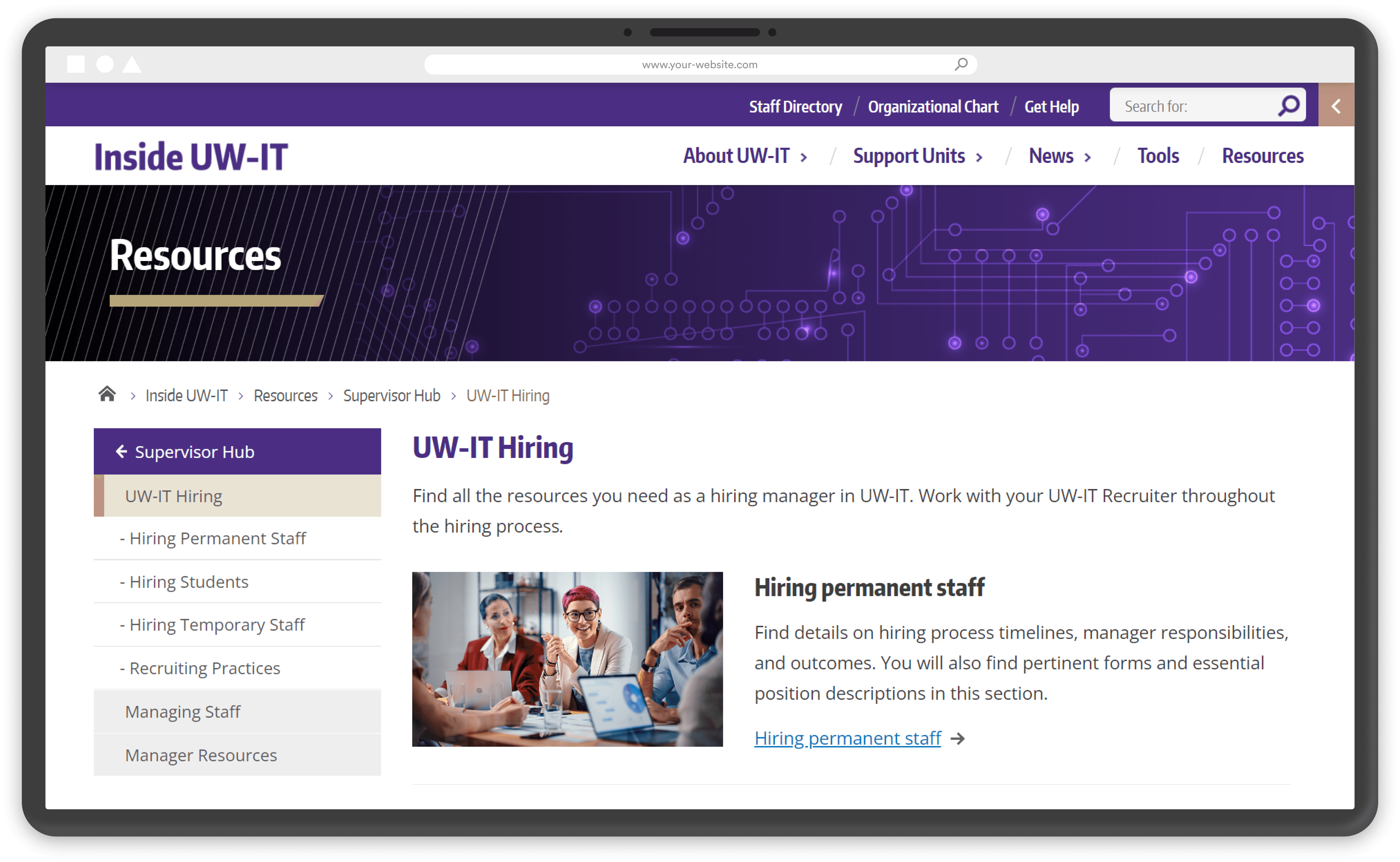 Redesigning an outdated internal resource into a structured, scannable hub for UW-IT supervisors.